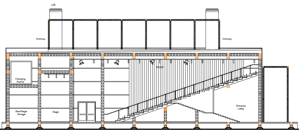 Triple E has conceived and designed a structure that provides not only a spacious main performance venue, but full front of house facilities and even a roof top area for dining and outdoor performances!