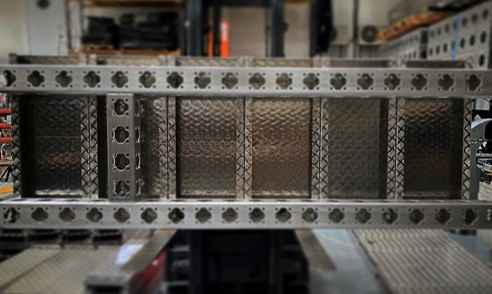 Large components are frequently brought to the main workpiece on pallets with pump trucks, previously having to be manhandled over obstructive bracing struts. Now they could be wheeled directly into position.